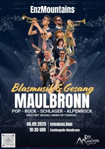 Die Stadtkapelle Maulbronn lädt herzlich zu einer ganz besonderen Feier unter dem Motto „Musik trifft Bier“ ein. Am 06. September erwartet die Gäste ein unterhaltsamer Abend mit live Musik von der Band Enz Mountains, die für den richtigen Sound sorgen wird.