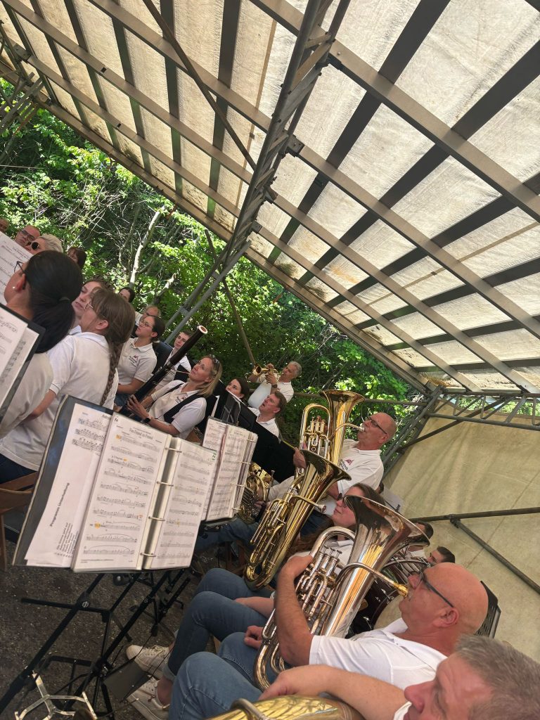 Schon früh am Morgen machten sich einige unserer Musikerinnen und Musiker sportlich auf den Weg – entweder zu Fuß oder mit dem Fahrrad – um pünktlich zum Beginn des Autritts auf dem Derdinger Horn einzutreffen. Belohnt wurden sie mit einem traumhaften Ausblick über die Region und einem rundum gelungenen Tag in musikalischer und geselliger Atmosphäre.