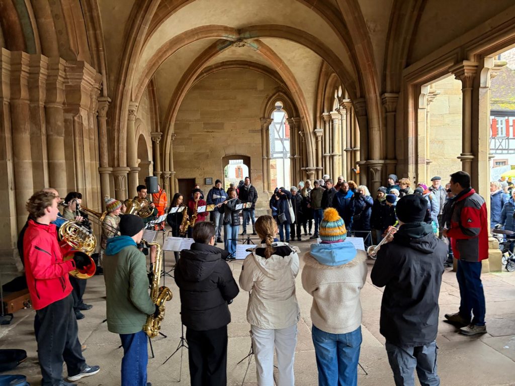 Am Samstag, den 6. Dezember eröffnete das Jugendorchester der Stadtkapelle Maulbronn traditionell den Maulbronner Weihnachtsmarkt. Im stimmungsvollen Ambiente des Paradieses im Kloster Maulbronn sorgten die jungen Musikerinnen und Musiker mit weihnachtlichen Klängen für eine festliche Atmosphäre und stimmten die vielen anwesenden Besucherinnen und Besucher auf einen schönen und besinnlichen Weihnachtsmarkt ein.